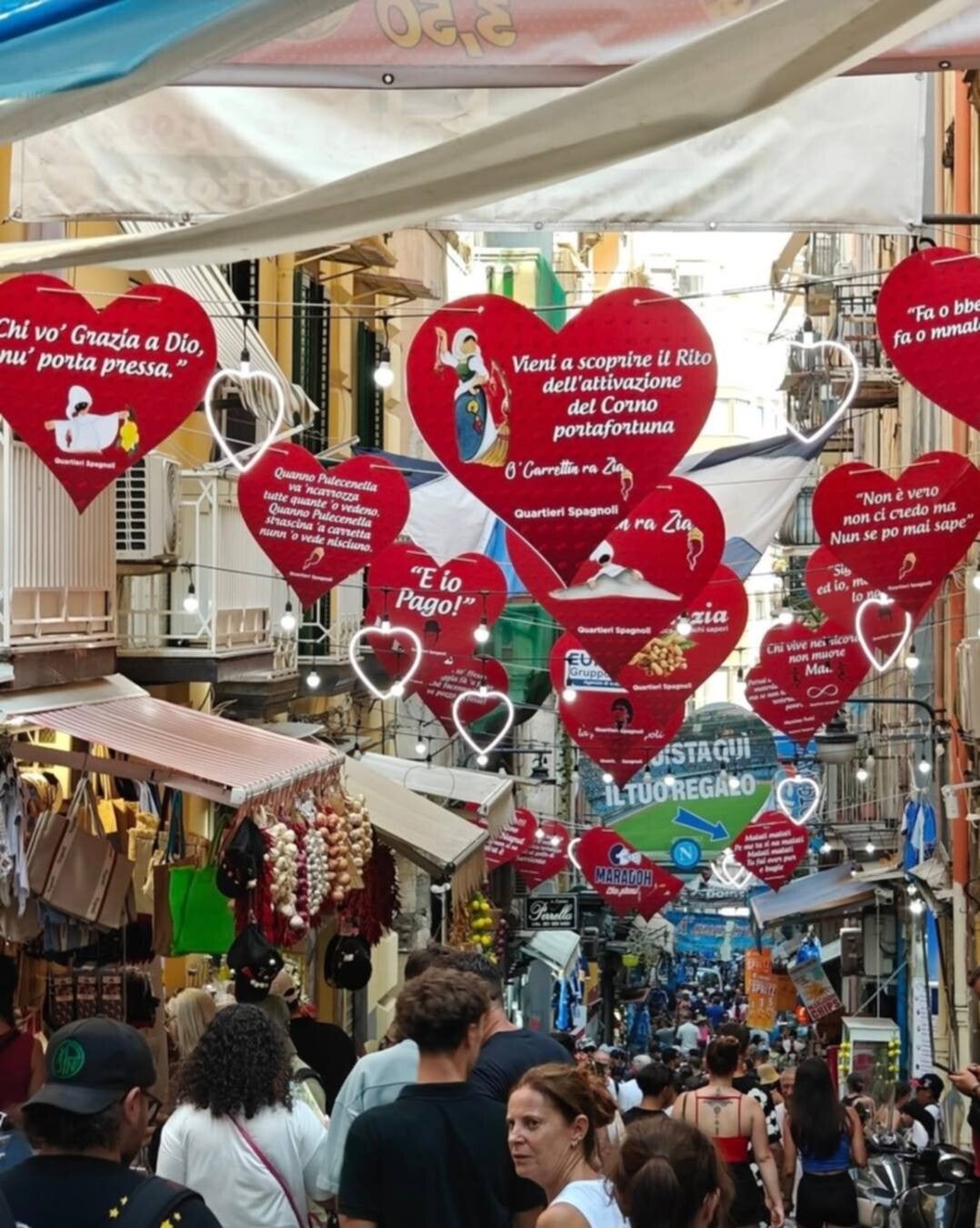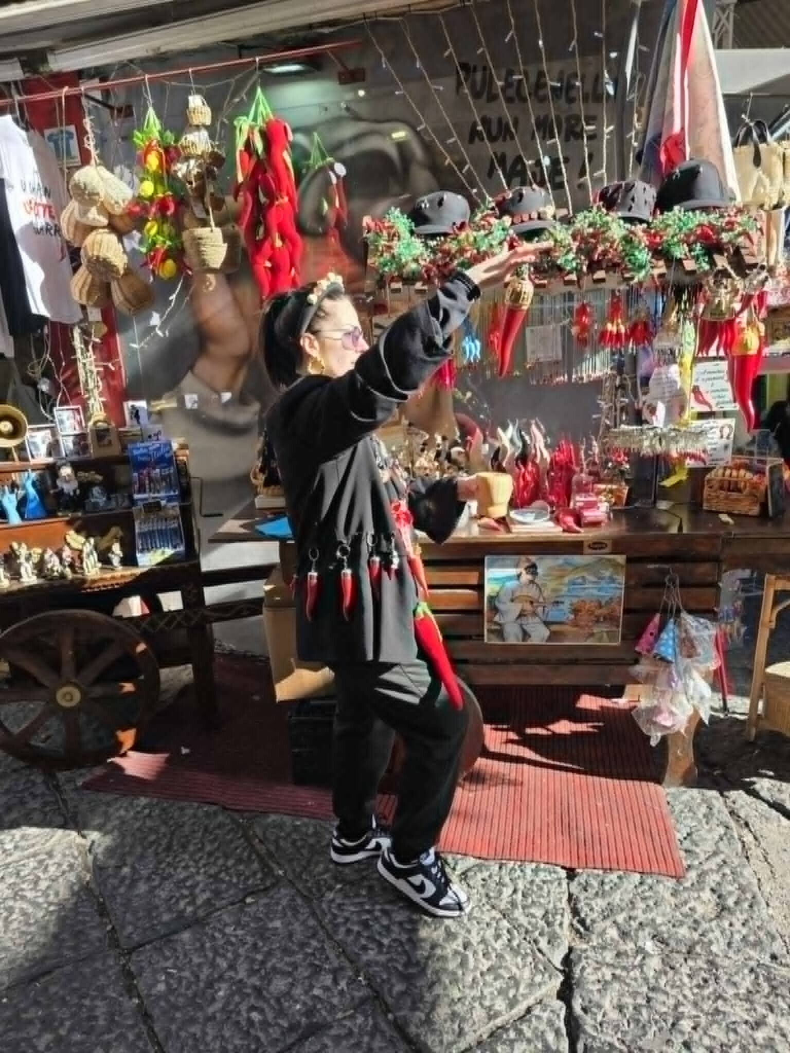 La nostra selezione di souvenir e gadget artigianali è attentamente curata per portare un pezzo di Napoli direttamente a casa tua. Ogni articolo è un'opera d'arte, realizzata con dedizione e maestria dai nostri artigiani locali. Dalle statuette ai portachiavi, dai magneti ai capi d'abbigliamento e per finire il rito gratuito del corno portafortuna dalla unica e sola zia scio scio, scoprirai tanti prodotti unici che catturano l'essenza della nostra città.